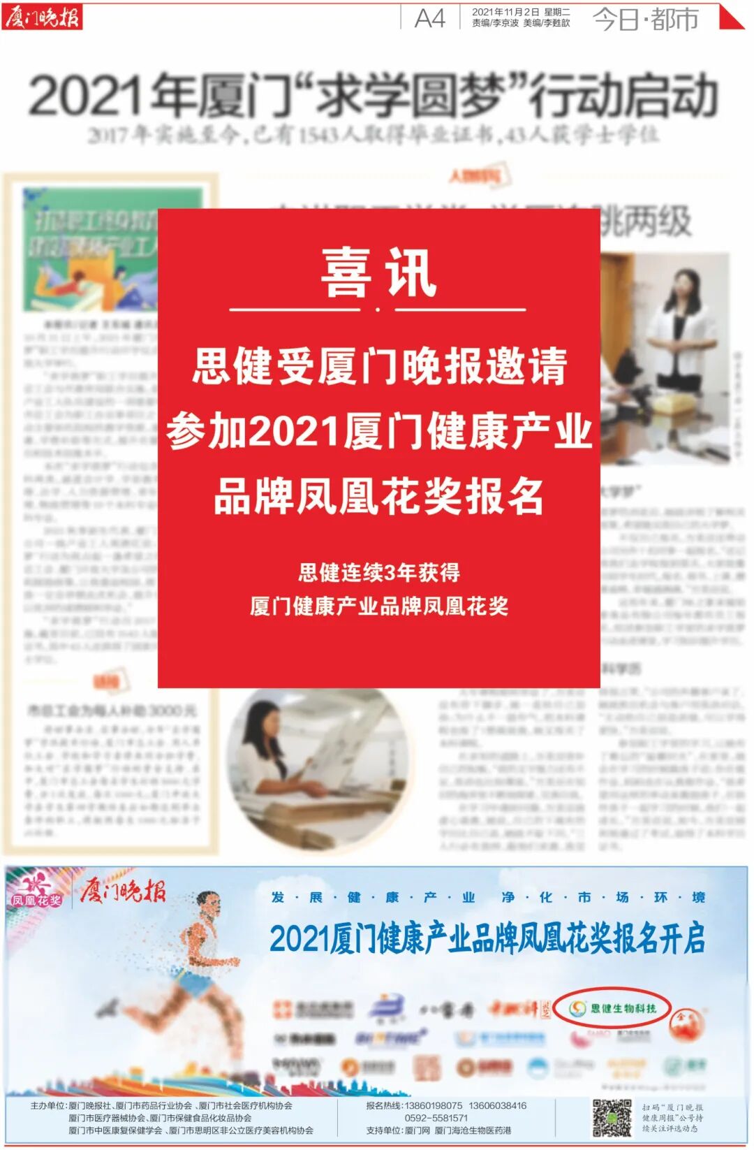 思健連續(xù)3年獲得廈門健康產(chǎn)業(yè)品牌鳳凰花獎(jiǎng)