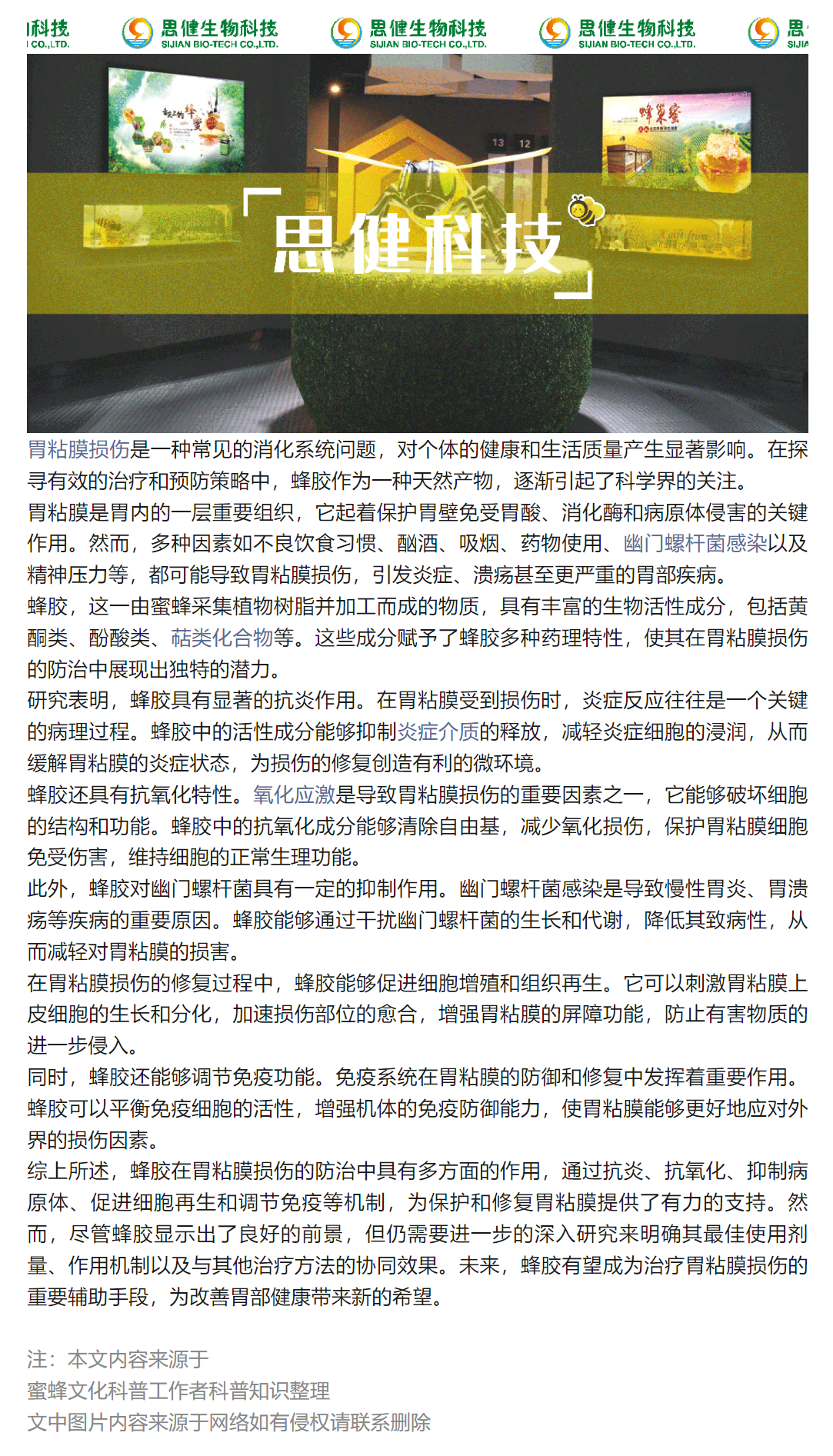 《蜂膠在胃粘膜損傷修復中的作用與機制》